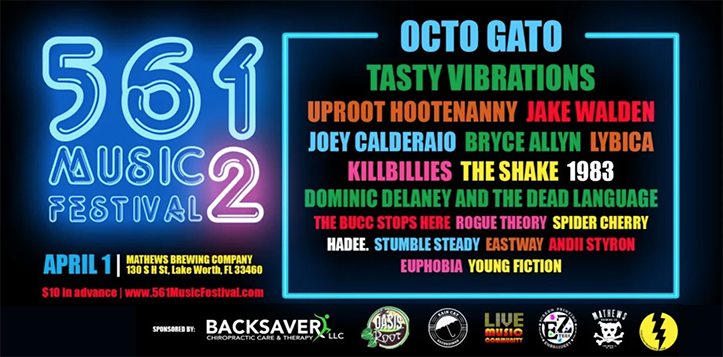 Two years, one fest, assorted sponsors and almost 100 podcast episodes along, 561 Music Festival TWO! will take over Mathews Brewing Company in Lake Worth for ONE DAY ONLY, April 1, with 20 of your neighbors’ best musical acts, plus tap beers inside and food trucks outside.