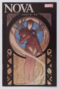 The exhibit also explores Art Nouveau’s revival during the countercultural movement of the 1960s and ’70s. It’s not difficult to see how some of the most famous psychedelic rock posters and LP covers for bands like the Grateful Dead and Diana Ross & the Supremes harken back to Mucha. His influence is also evident in video game art and in covers for Marvel Comics, with their distinct geometrical shapes, curvy lines and foregrounded main characters.