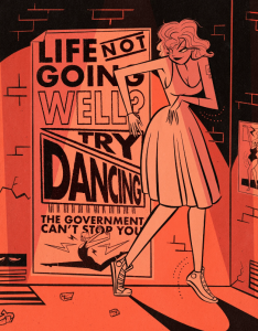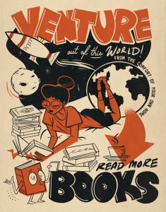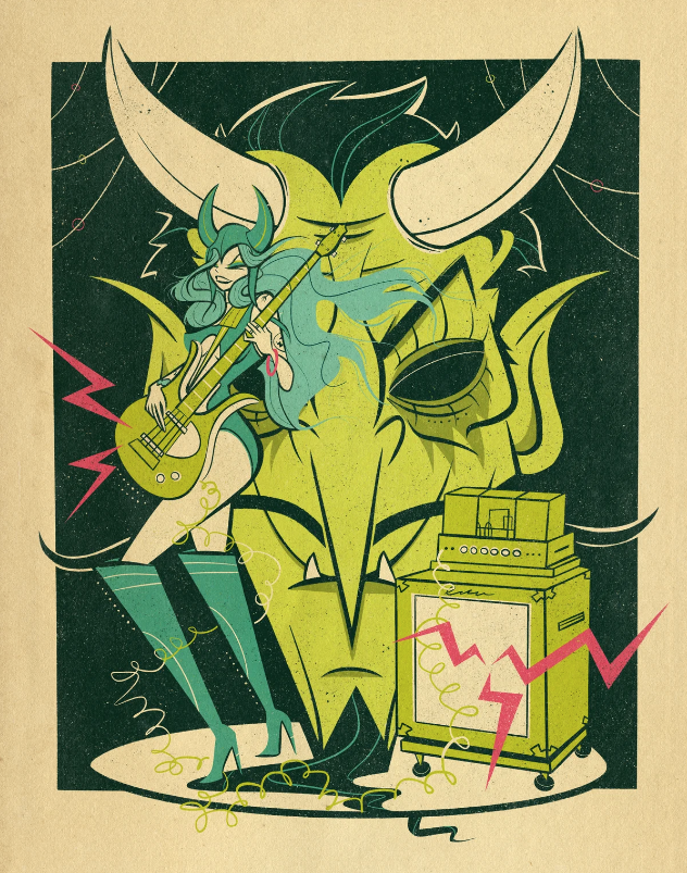 James is preparing to move to Nashville to restart his musical career — a project he says is made possible by his livelihood as an artist. He feels like he’s making headway with the music, but is not ready to put it out there just yet. Among the works that might, or might not, find their way into wider world is an “industrial musical” set 60 years into the future that James says he’s already written. In the meantime, he’s keeping his Instagram followers delighted and paying customers happy with a variety of prints, tarot decks, stickers, lapel pens and more in a style that returns our visual past to us as an offbeat pleasure.