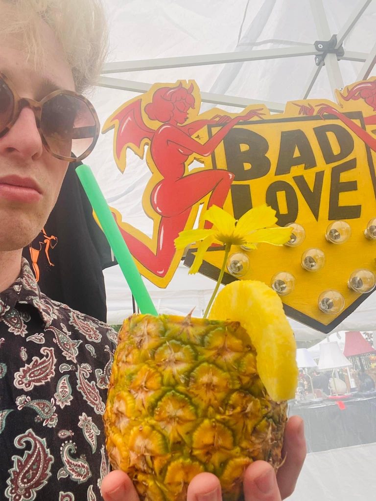 Vernon “Bad Love” is this month’s PureHoney spotlight artist and the the poster artist for the upcoming edition of Bumblefest, PureHoney’s annual live music party in downtown West Palm Beach. It’s a match made in retro-indie Shangri-la: James’ artwork is an amalgam of childhood cartoons, cult film references and go-go visuals that more than lives up to its tagline: “bizarre, playful, loud comic, erotic, and macabre.”
