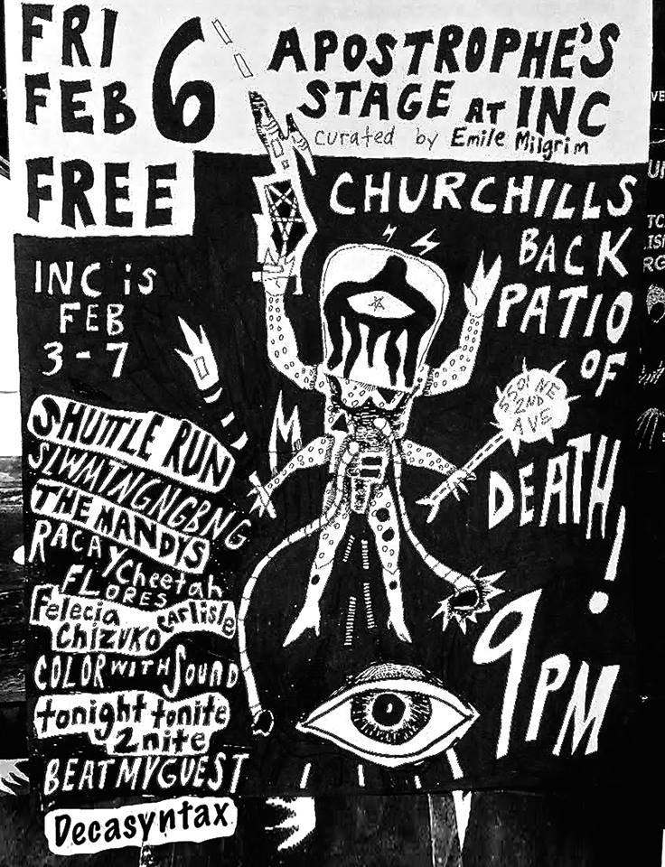 12th Annual International Noise Conference: February 3-7 at Churchill’s Pub, 5501 NE 2nd Avenue in Miami. Each night has different start times. Check squelchers.net/inc.htm for more details. Free!