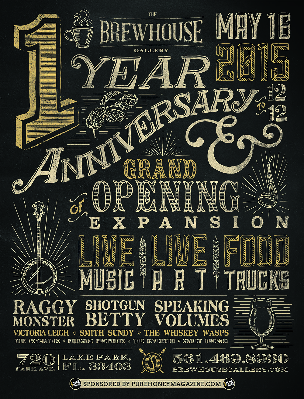 The One Year Party launches May 16 with Speaking Volumes, Sweet Bronco, Smith Sundy, Shotgun Betty, Raggy Monster, The Whiskey Wasps, The Psymatics, Fireside Prophets, Ella Herrera, The Inverted PLUS Art, Live Music, Craft Beer and Food Trucks.