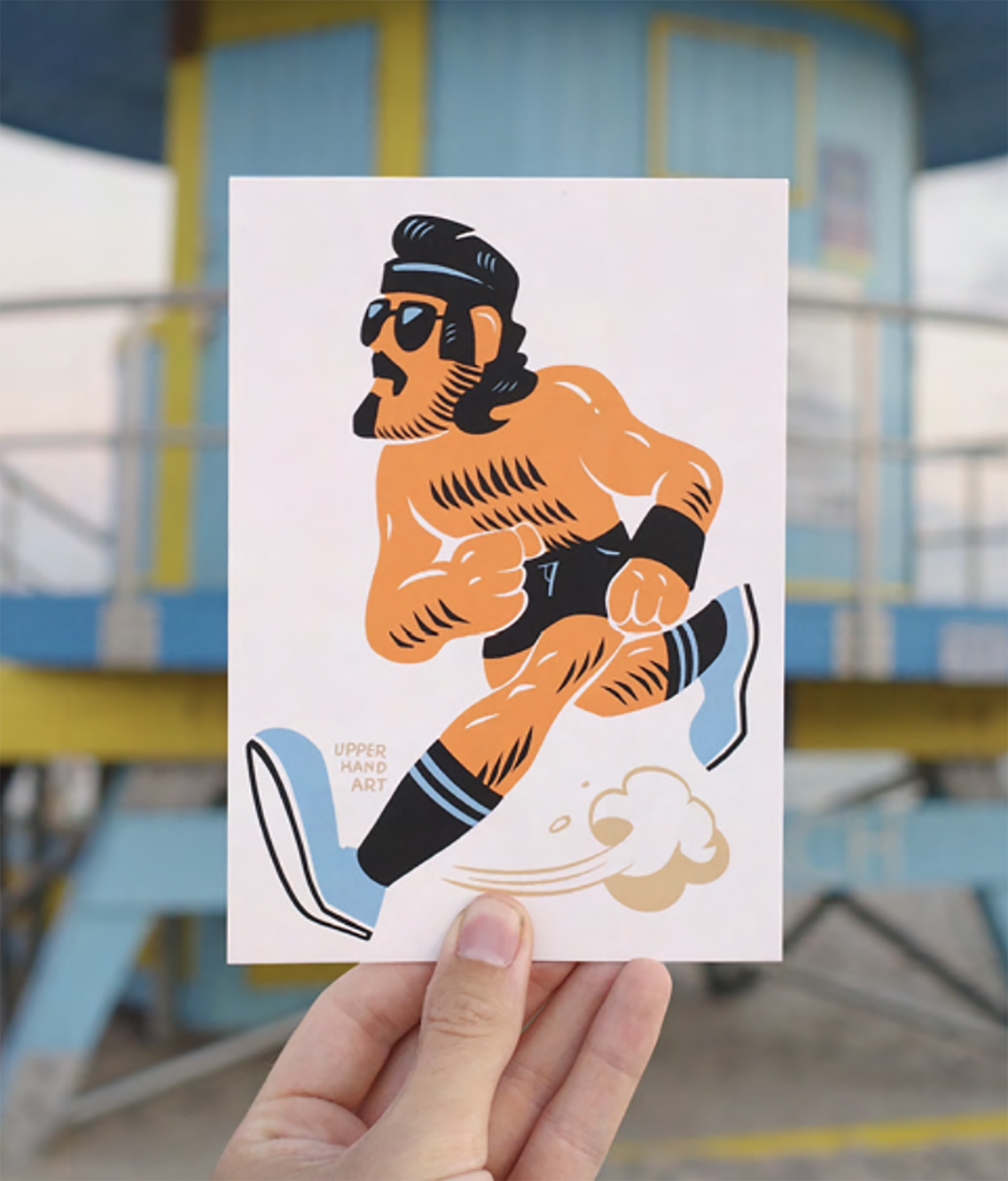 Butler’s open-call credo is “choose your own adventure,” and people have responded. Some beachy creatives quilt their towel art from scratch. Others assemble what Butler affectionately calls “Frankenstein” creations in mixed media. Some go the design-and-print route. “There’s print-on-demand websites online but those are becoming less affordable with poorer turnaround times,” Butler observes. “On the one hand, that’s a shame. On the other hand, it poses an opportunity to do more homemade stuff.”