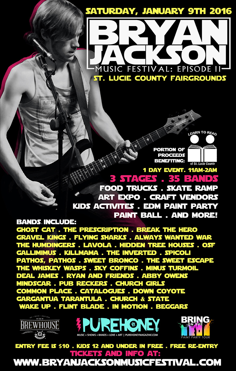 For the second annual fest—titled Bryan Jackson Music Festival, Episode II, in a Star Wars font appropriate for this movie season—Jones is more prepared. It will be hosted January 9 at St. Lucie County Fairgrounds, where 35 bands in genres ranging from punk, hardcore and indie to folk, country and reggae will perform on three stages.
