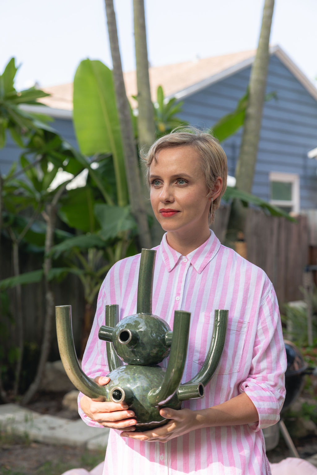 The other strand of Prince’s “Pineapple” work is a series of vase-like sculptures that seem both approachable yet otherworldly, their weird, corporeal shapes — like alien hanging fruits or hearts with extra valves — sometimes echoed in Prince’s dreamlike floral illustrations.