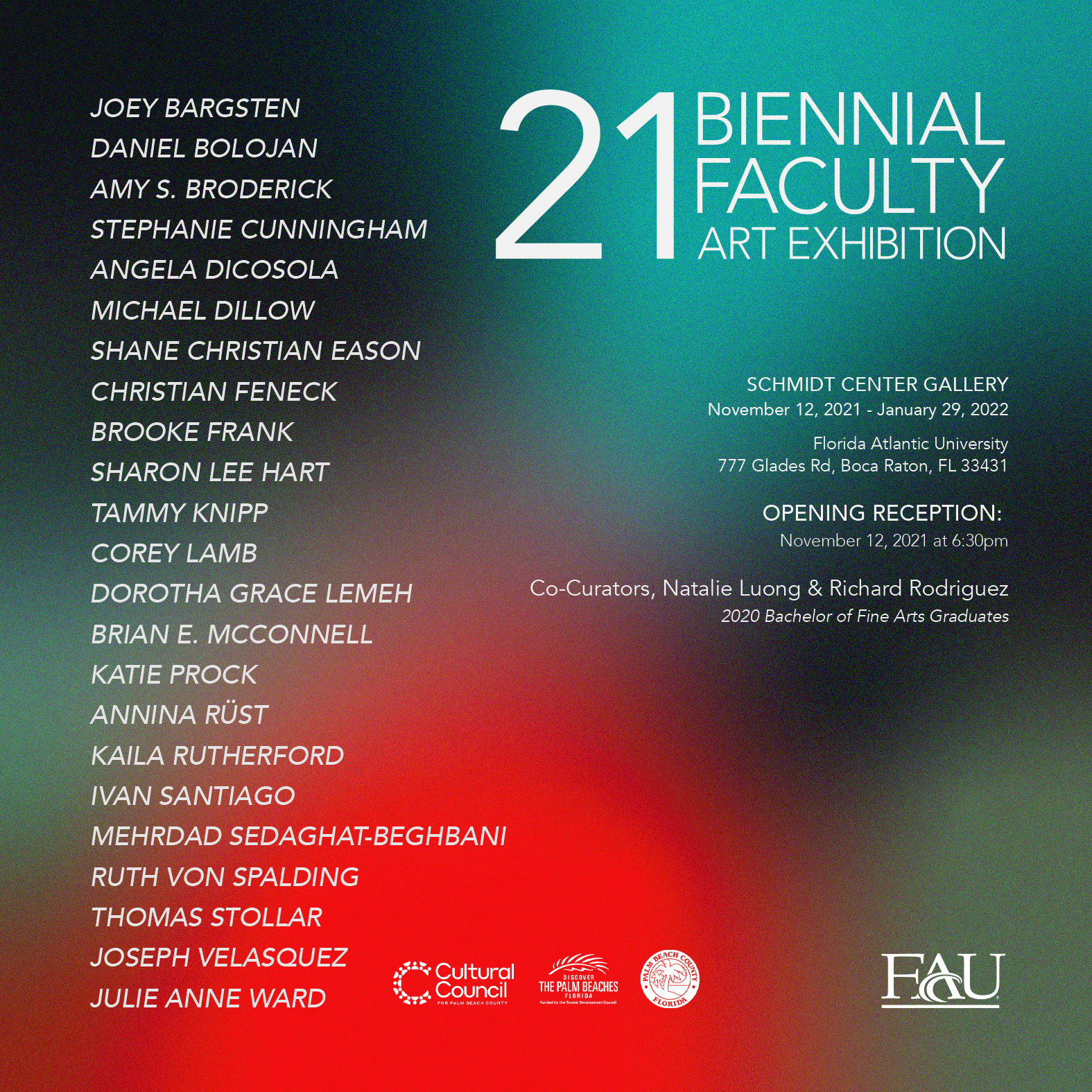 Participating artists include faculty from FAU’s Department of Visual Arts and Art History, the Harriet L. Wilkes Honors College and the School of Architecture within the College for Design and Social Inquiry.