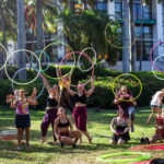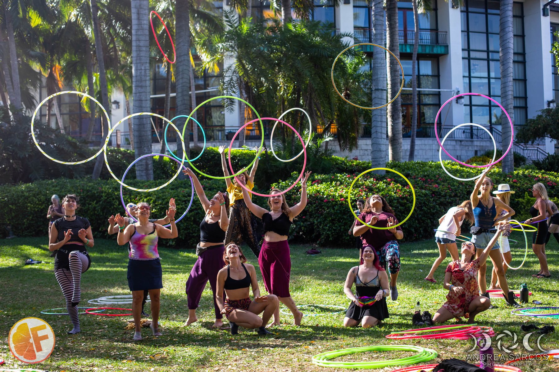 The Fort Lauderdale gathering is the first of seven Flow Fests taking place in cities across the country during 2026. Flow Fest founder and director Casandra Tanenbaum tells PureHoney that “Symbiotic” is this year’s theme: “We are consciously leaning into our interdependence and cultivating collaboration and coherence.” In the Flow with Hoops class, to give one example, the hoop becomes a metaphor for the interplay of inner and outer worlds: thought looping into breath, breath into emotion, emotion into physical expression. Movement with hoops cultivates a powerful awareness of cycles of life and creation.