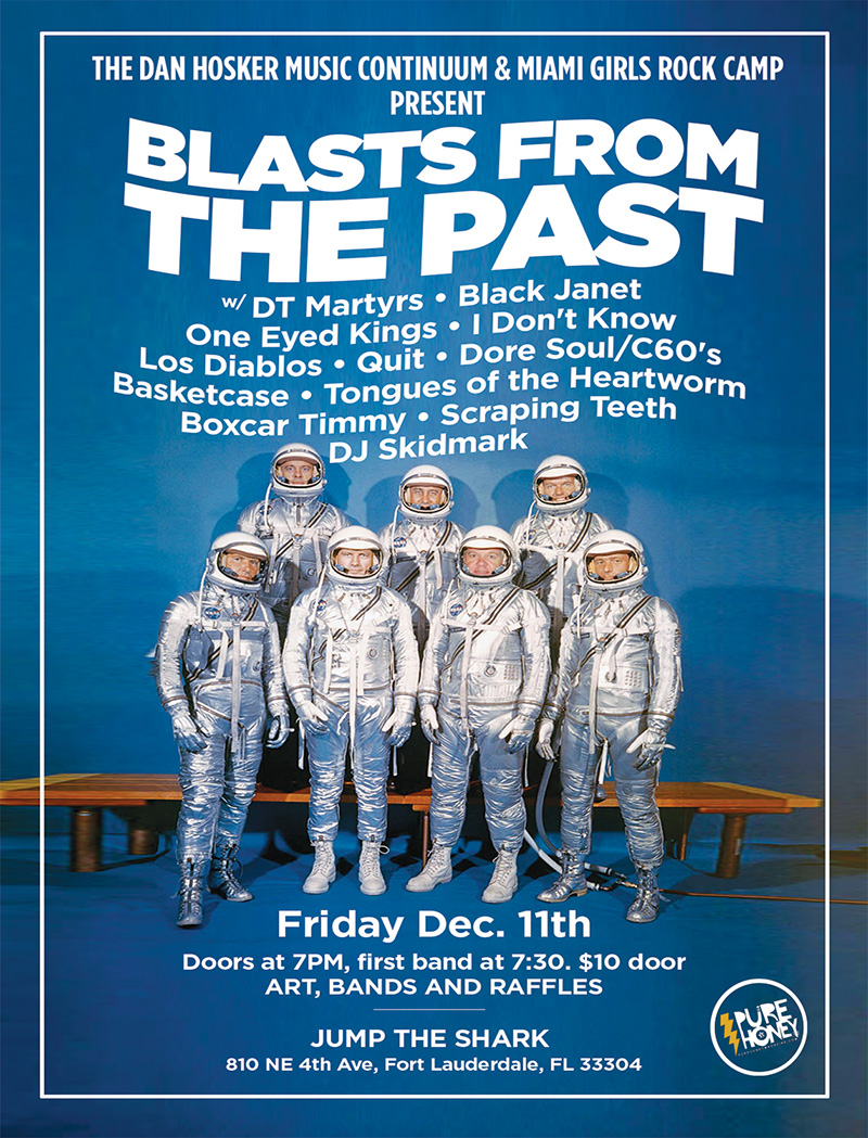 The inaugural concert to fund a project called the Dan Hosker Music Continuum was held that December, around the birthdate of this prolific punk and indie guitar player. Every year since, the fund has awarded $500 to a student at Hosker’s hometown high school, Bishop Fenwick, in Danvers, Mass., for furthering the recipient’s music education. Proceeds from the fourth annual concert, taking place on December 11 at Jump the Shark in Fort Lauderdale, will also buy musical instruments for girls attending Miami Girls Rock Camp whose families could not otherwise afford them.