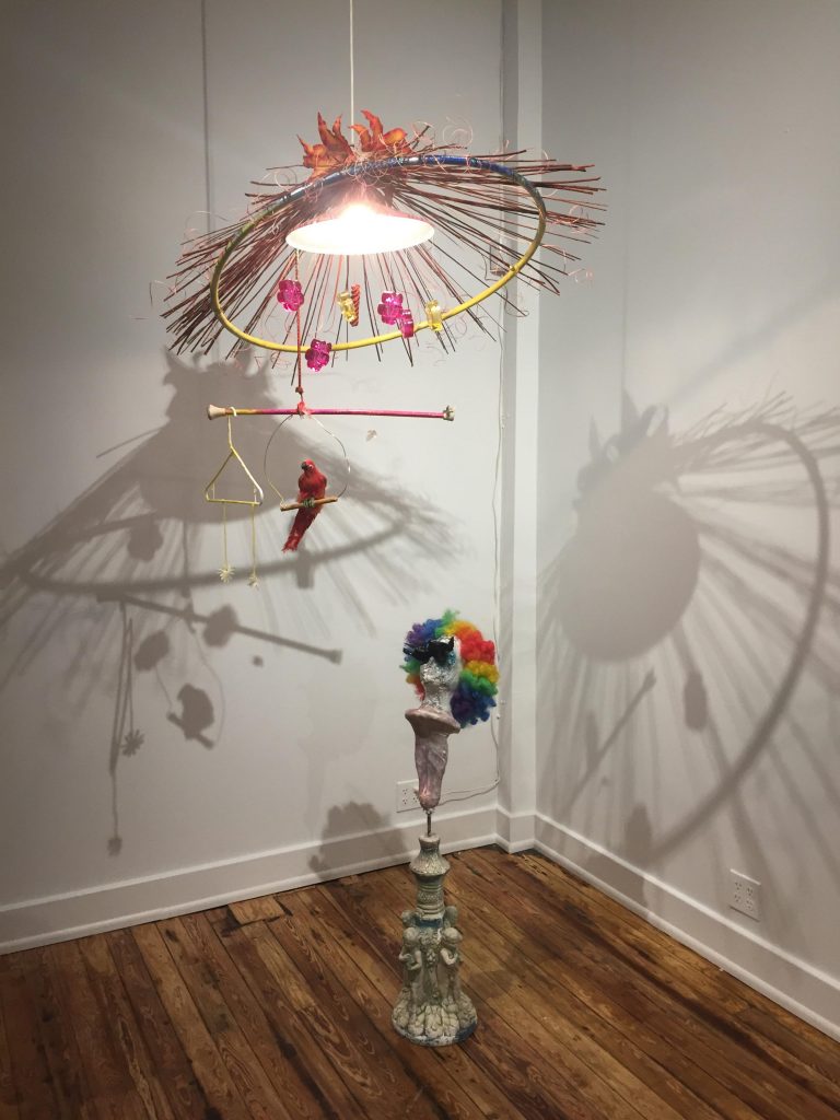 Casey, who now lives in Philadelphia, might have had her own brush with the liminal when a shipping mishap resulted in her piece for the exhibition, an ascending mixed-media creation called “Birds in Space,” having to be rebuilt.