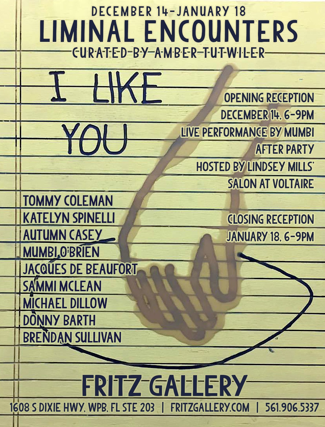 “Liminality seems to depend on transience; that is, if you mentally pause mid-action during an otherwise ‘normal’ transaction, a healthy skepticism can emerge about the legitimacy of that action,” artist and educator Amber Tutwiler tells PureHoney, illuminating the keyword in her first-ever curated show, Liminal Encounters, at the Fritz Gallery in West Palm Beach. “We can begin to ask questions about our interactions with our environment — interactions that we otherwise take for granted, especially as it pertains to ritual, language, space, technology, and so many other aspects of our daily lives.”