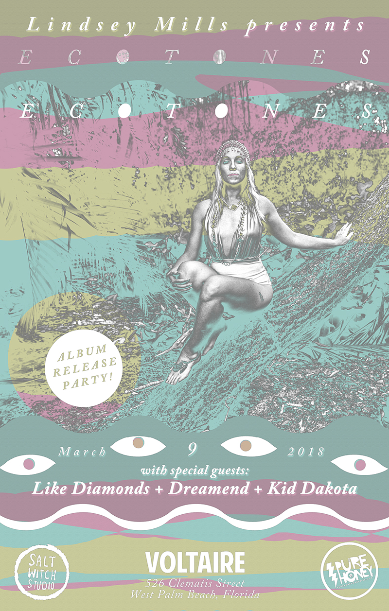 Lindsey Mills and the Lazy Lovers debut “Ecotones” at an album release party with Like Diamonds, Dreamend and Kid Dakota, March 9 at Voltaire in West Palm Beach ~ Tim Moffatt
