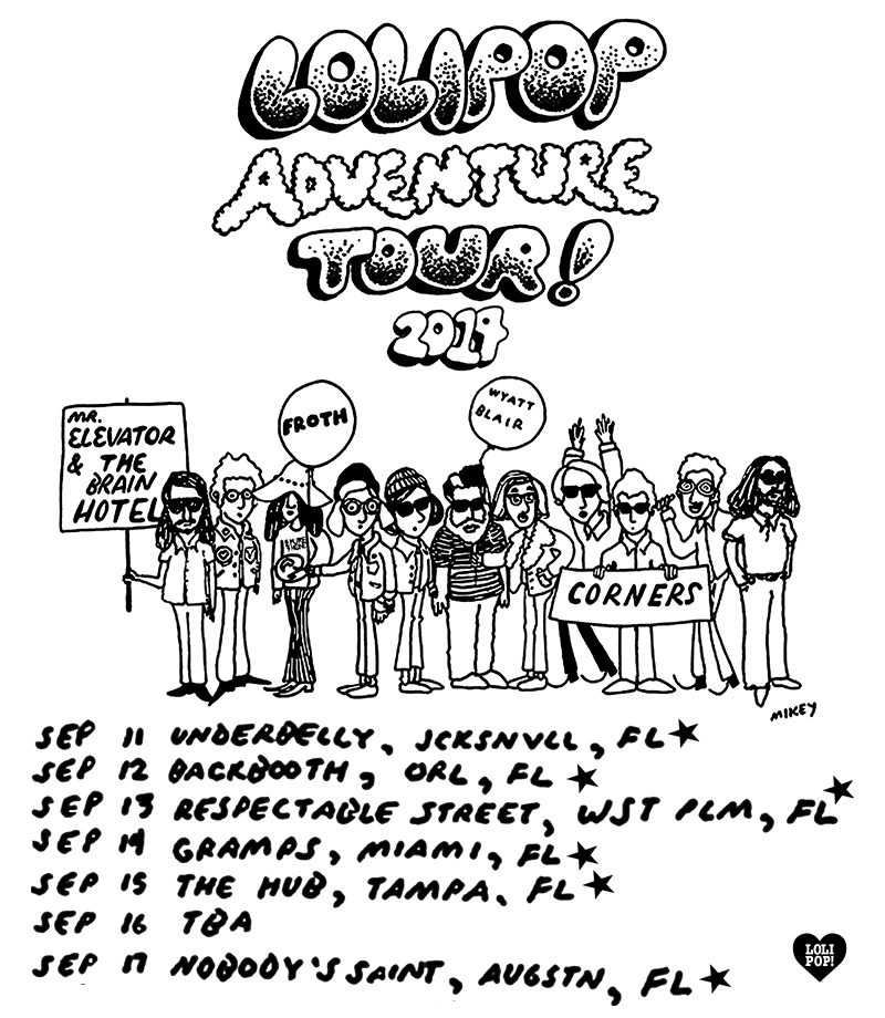 The tour, which could use a bit of financial help via this Indiegogo fundraiser, will bring Mr. Elevator and the Brain Hotel, Corners, Froth, and Wyatt Blair to South Florida.
