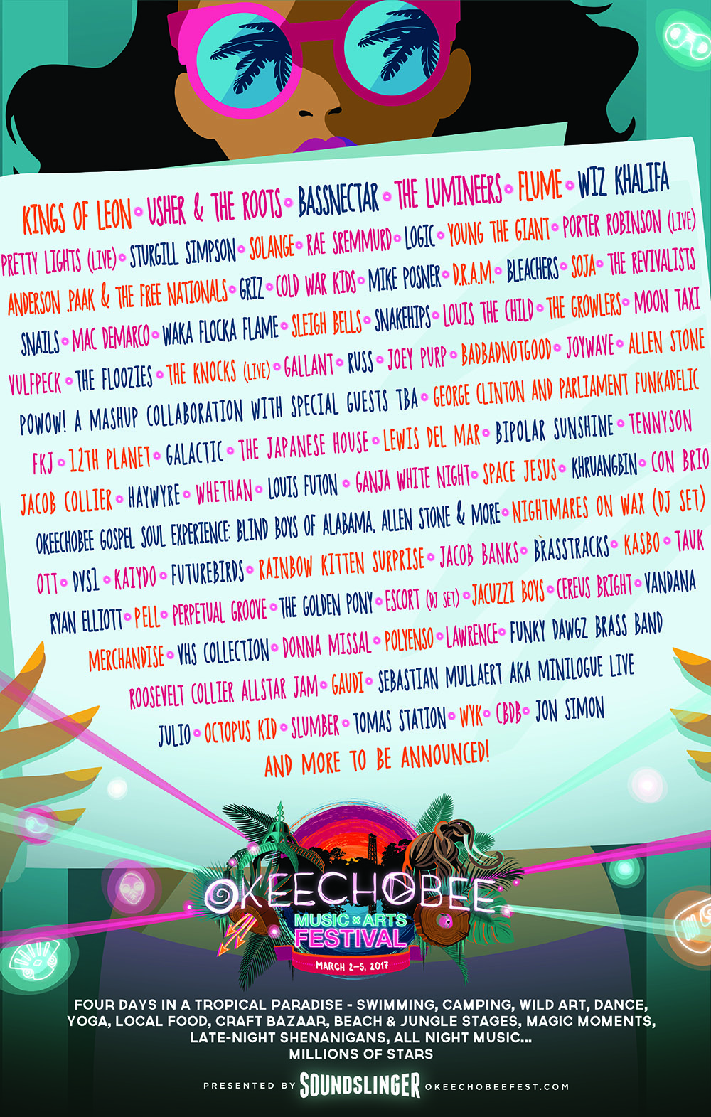 This iteration of Okeechobee, March 2nd through the 5th, will once again feature the PoWoW! (with artists yet to be named) and expands upon that idea with the Okeechobee Gospel Soul Experience featuring Blind Boys of Alabama, Allen Stone, and more. It’s yet another wrinkle that bucks the standard formula of most music festivals. If festival goers learned anything about OMF last year, is that it’s a fest fraught with opportunity; it almost seems purposely designed to encourage the unexpected. The headliners – Kings of Leon, The Lumineers, Bassnectar, Wiz Khalifa – are all fine and dandy and certain to be great. What we really should look forward to and be excited about are the unknown quantities. The serendipity of it all!