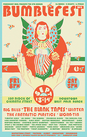 When the Bumblefest 2017 music festival returns to downtown West Palm Beach on Sept. 2, 22 indie bands from Palm Beach County and beyond will perform along Clematis Street. Everything about the bash, which kicks off at 6 p.m., came together through concert promoter Steev Rullman, publisher of a 6-year-old, fold-out culture magazine, PureHoney, that shares the same mission as his festival: celebrating South Florida’s music scene. An influential Palm Beach County scenester who books live music at Lake Worth’s Propaganda and West Palm Beach’s Respectable Street, Rullman started Bumblefest last year to mark PureHoney’s fifth anniversary. Bumblefest will be headlined by Austin psych-rock quintet Holy Wave, and will sprawl across four stages at Subculture Coffee, Lost Weekend, Respectable Street and Voltaire.  |  READ MORE at Sun Sentinel/SouthFlorida.com