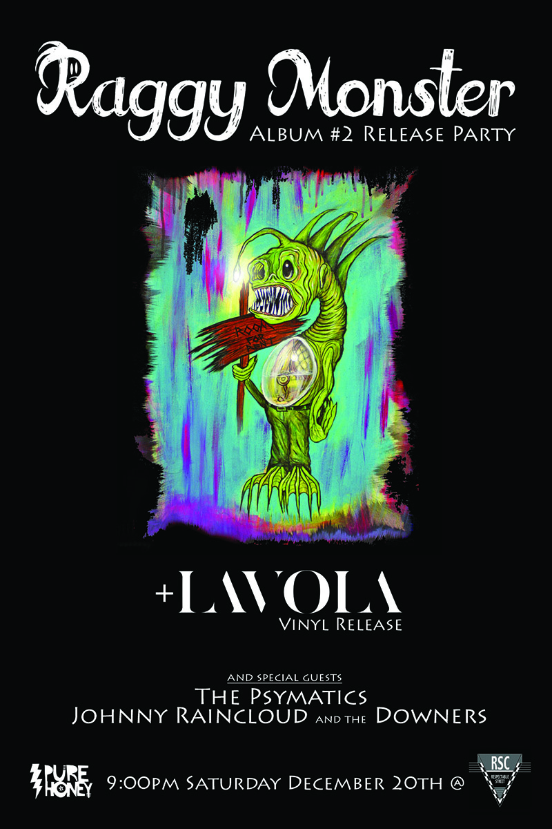 The Raggy Monster album release and Lavola vinyl release show takes place December 20 at Respectable Street with Johnny Raincloud & the Downers and The Psymatics. RSVP