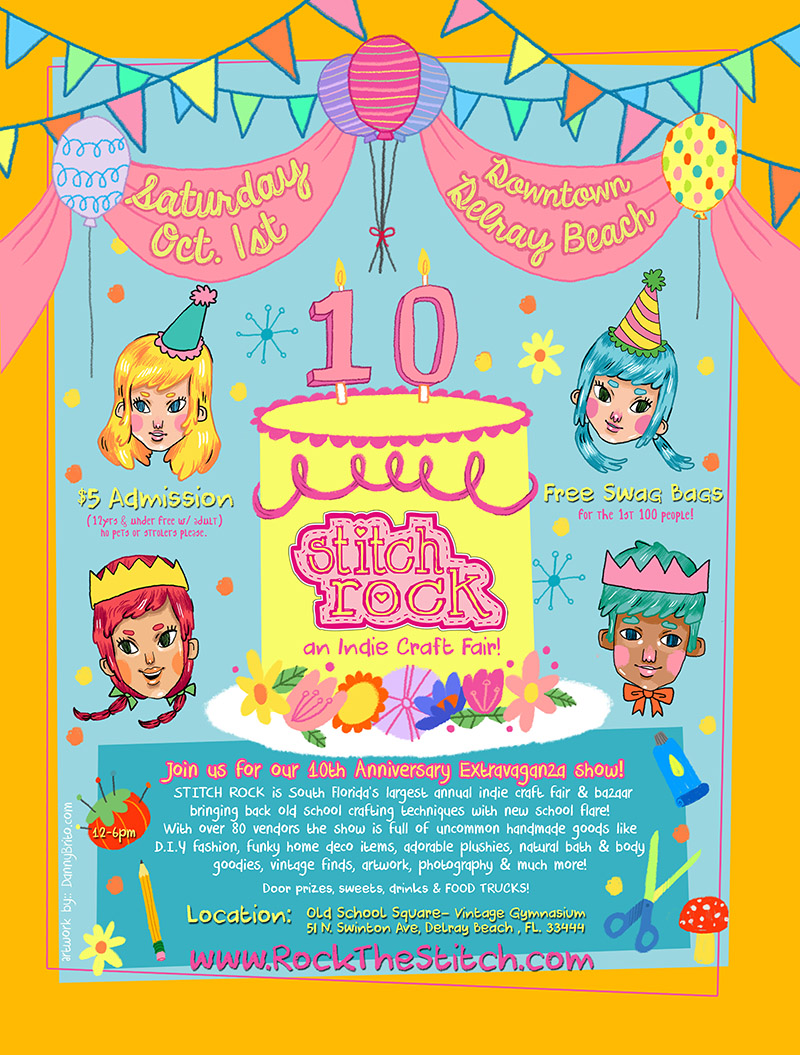 Old School Square’s gymnasium in Delray Beach, Stitch Rock’s perch since 2007, will be stuffed with more stitched whimsies when the fair returns for its 10th anniversary on Saturday, Oct. 1. And 10 years sounds just long enough for Linton, who will “probably” retire her quirky marketplace after this year’s fest. “I don’t want to say it’s our last, final show, but I want to go out on a positive note,” says Linton, who programs monthly art shows at Ink and Pistons Tattoo and Piercings, the parlor she owns with husband JR in West Palm Beach. “[Stitch Rock] has been a staple for so long, and I wanted to end this on a nice, round number.”