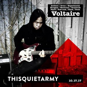 ThisQuietArmy joins the instrumental quintet Set and Setting on tour this fall in a kindred  pairing of unsung (literally) projects, each with its own approach to immersive, guitar-powered music. Set and Setting’s ensemble yields a wall of sound inlaid with a seeming infinity of textures on their new album Reflectionless,