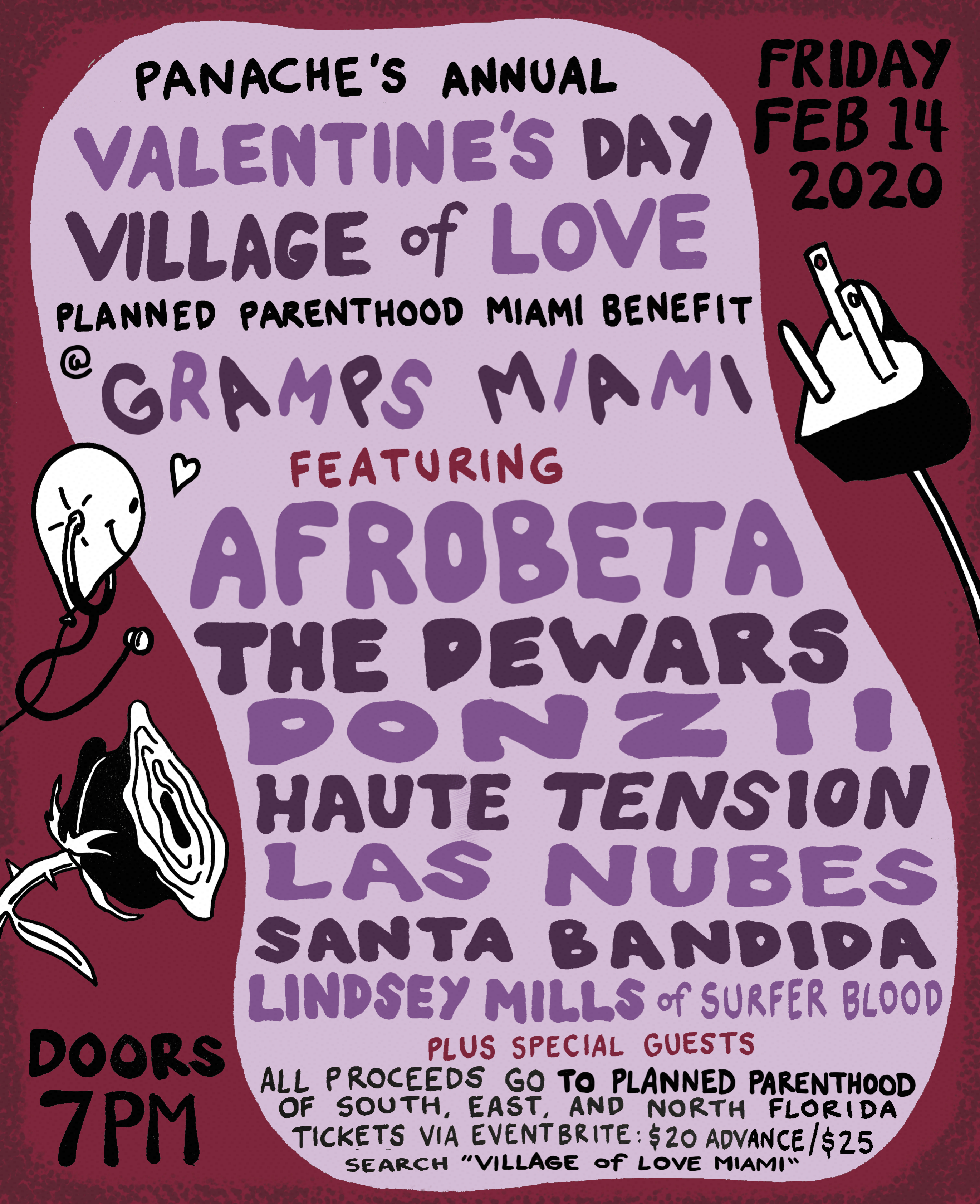 For the eighth year, Panache Booking in Los Angeles has partnered with likeminded folks across the U.S. to raise funds for Planned Parenthood in the most “symbolic” day for love. This year, February 14 will also get slayed in New York, Chicago and San Francisco, and in Miami with Gramps in Wynwood hosting. All proceeds from the Miami show will go to Planned Parenthood of South, East, and North Florida.