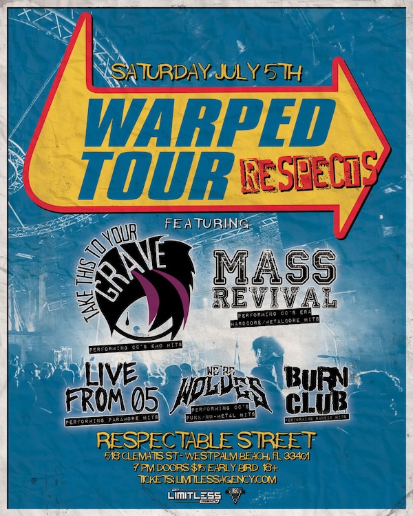 Warped Tour Respects kicks off 7pm Saturday, July 5 at Respectable Street in West Palm Beach. instagram.com/limitlessagencyfl ~ Amanda Moore